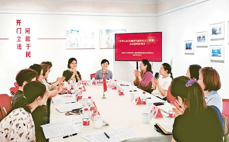 2023年9月8日,学前教育法(草案)立法意见征询会在上海市长宁区虹桥街道基层立法联系点举行。 上海市长宁区虹桥街道基层立法联系点供图